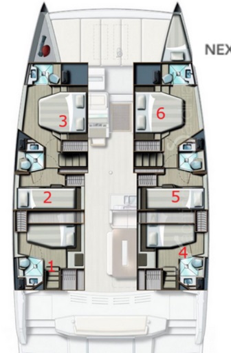 - poniżej układ kabin na katamaranie